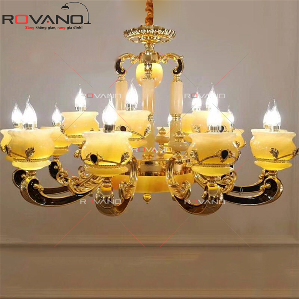Đèn chùm cao cấp RCP-18012/15 với thiết kế mới lạ, độc đáo được đông đảo khách hàng tại Rovano đáng giá cao hiện nay. Sản phẩm được lấy cảm hứng từ những ngọn nến lung linh kết hợp với thiết kế với những hoa văn được chạm khắc tỉ mỉ, kỹ lưỡng. Qua đó mang lại sự sang trọng, đẳng cấp cho chiếc đèn và các không gian nội thất trong quá trình sử dụng.